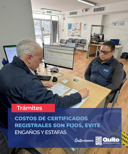 Los valores de los ocho tipos de certificados que emite el Registro de la Propiedad son fijos y los ciudadanos del Distrito Metropolitano de Quito no deben cancelar más de lo establecido por cada uno de ellos. Las tarifas están disponibles en las redes sociales de la entidad registral y en la página web: registrodelapropiedad.quito.gob.ec